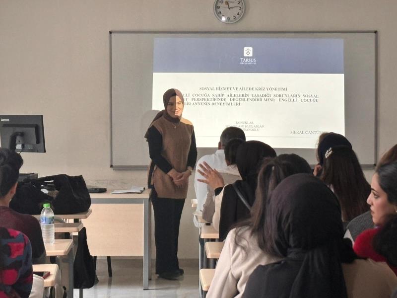 Sosyal Hizmet Bölümü tarafından düzenlenen Aile Söyleşileri Serisi kapsamında, 15.12.2025 tarihinde B-310 numaralı derslikte saat 11.00’de engelli bireye sahip ailelerin yaşadığı sorunlar sosyal hizmet perspektifinden ele alınmıştır. Söyleşi, Meral Cantürk’ün sunumu ile gerçekleştirilmiştir. Söyleşide; ailelerin gündelik yaşamda karşılaştıkları sosyal, ekonomik ve psikososyal güçlükler, destek mekanizmaları, hak temelli yaklaşımlar ve sosyal hizmet uygulamalarının bu süreçteki rolü tartışılmıştır.